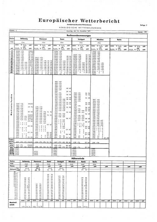 Europäischer Wetterbericht. Beilage 1, Bodenwettermeldungen. 1976-1994