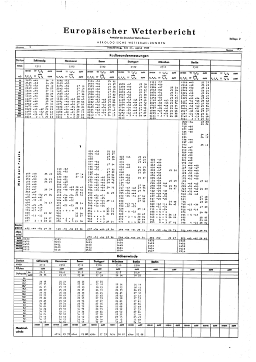 Europäischer Wetterbericht. Beilage 1, Bodenwettermeldungen. 1976-1994