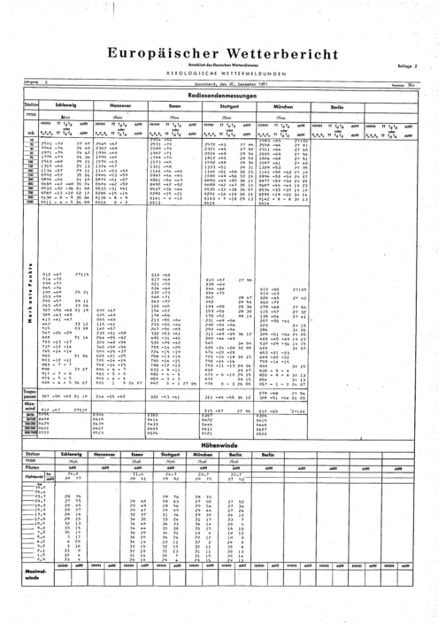 Europäischer Wetterbericht. Beilage 1, Bodenwettermeldungen. 1976-1994