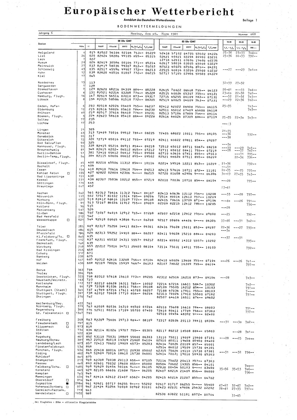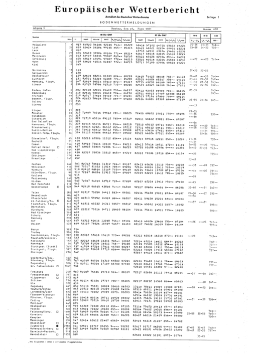 Europäischer Wetterbericht. Beilage 1, Bodenwettermeldungen. 1976-1994