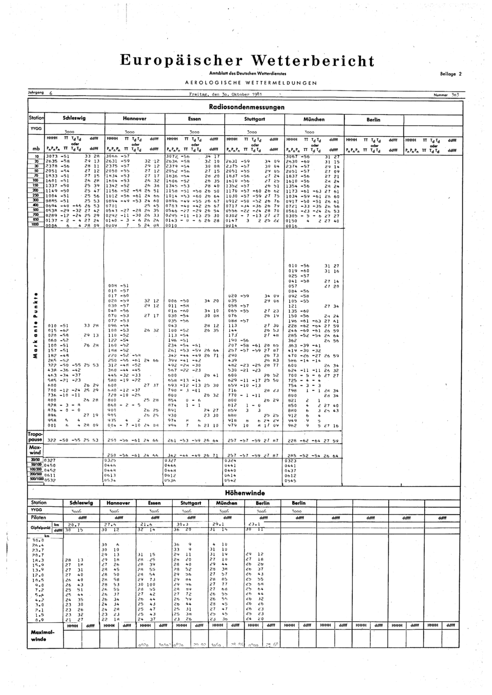 Europäischer Wetterbericht. Beilage 1, Bodenwettermeldungen. 1976-1994