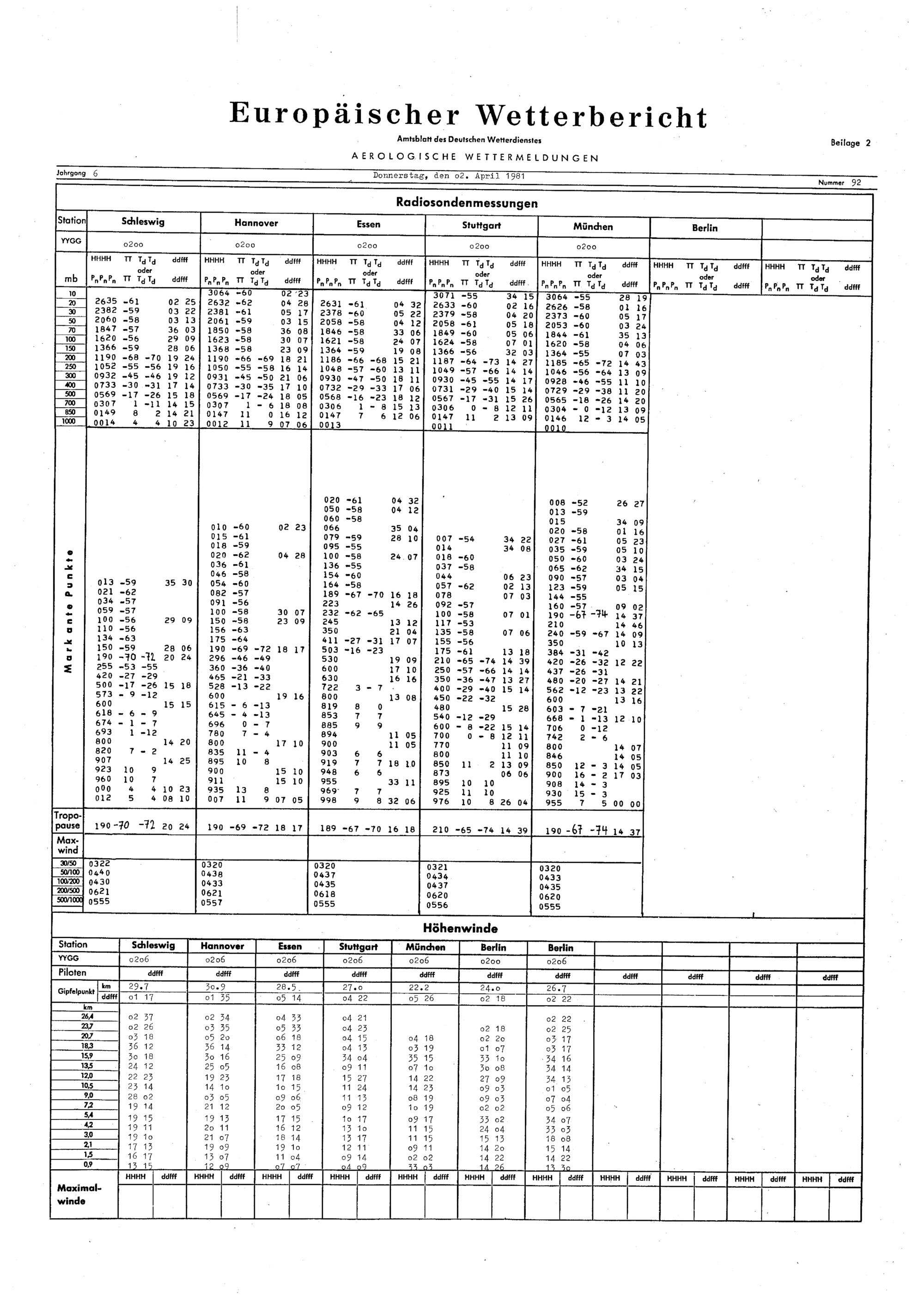 Europäischer Wetterbericht. Beilage 1, Bodenwettermeldungen. 1976-1994