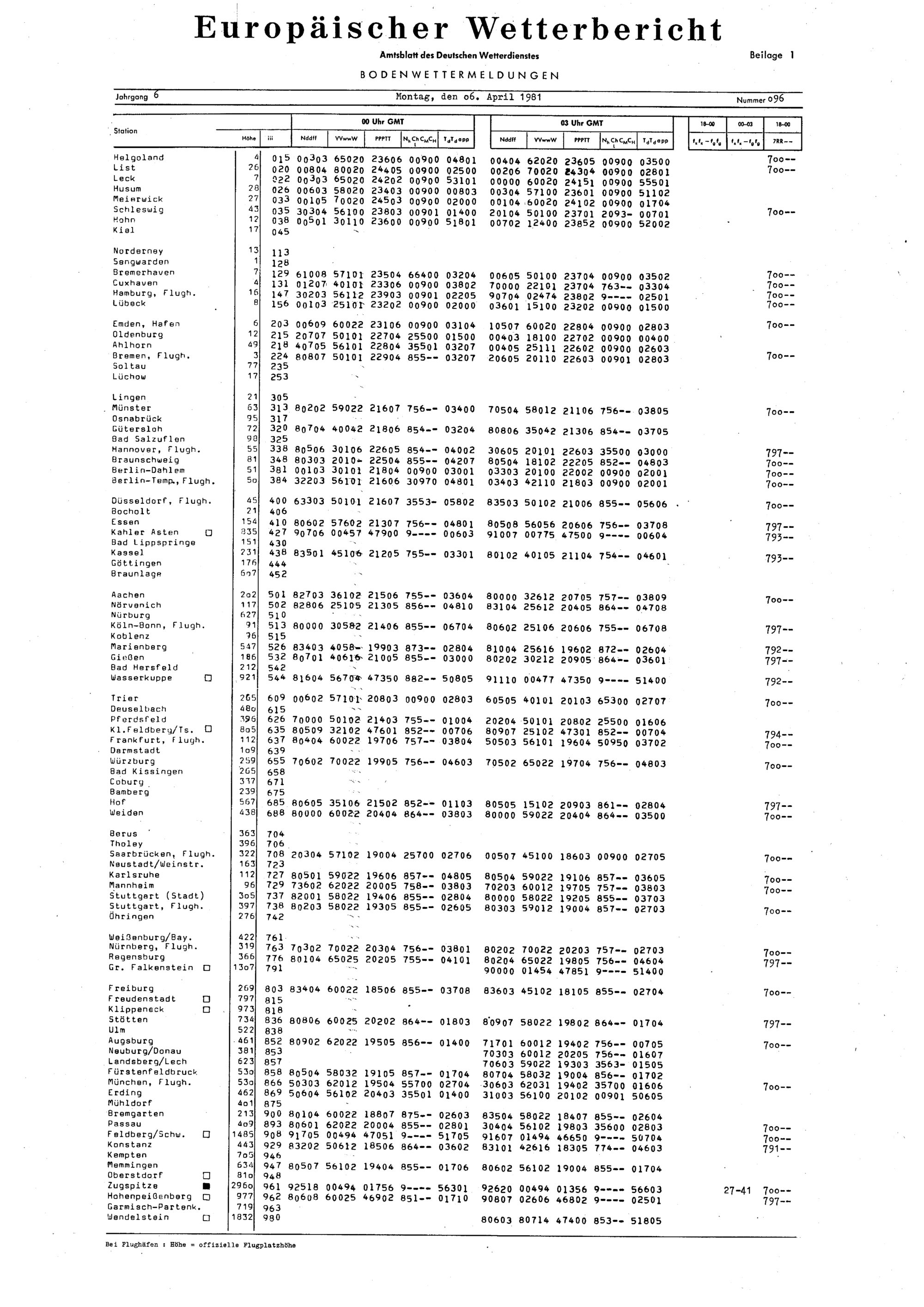 Europäischer Wetterbericht. Beilage 1, Bodenwettermeldungen. 1976-1994