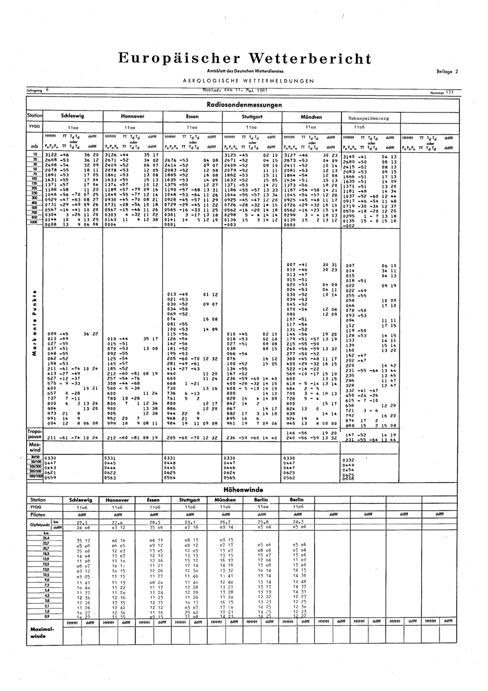 Europäischer Wetterbericht. Beilage 1, Bodenwettermeldungen. 1976-1994