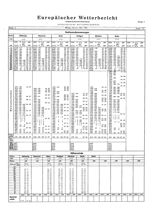 Europäischer Wetterbericht. Beilage 1, Bodenwettermeldungen. 1976-1994