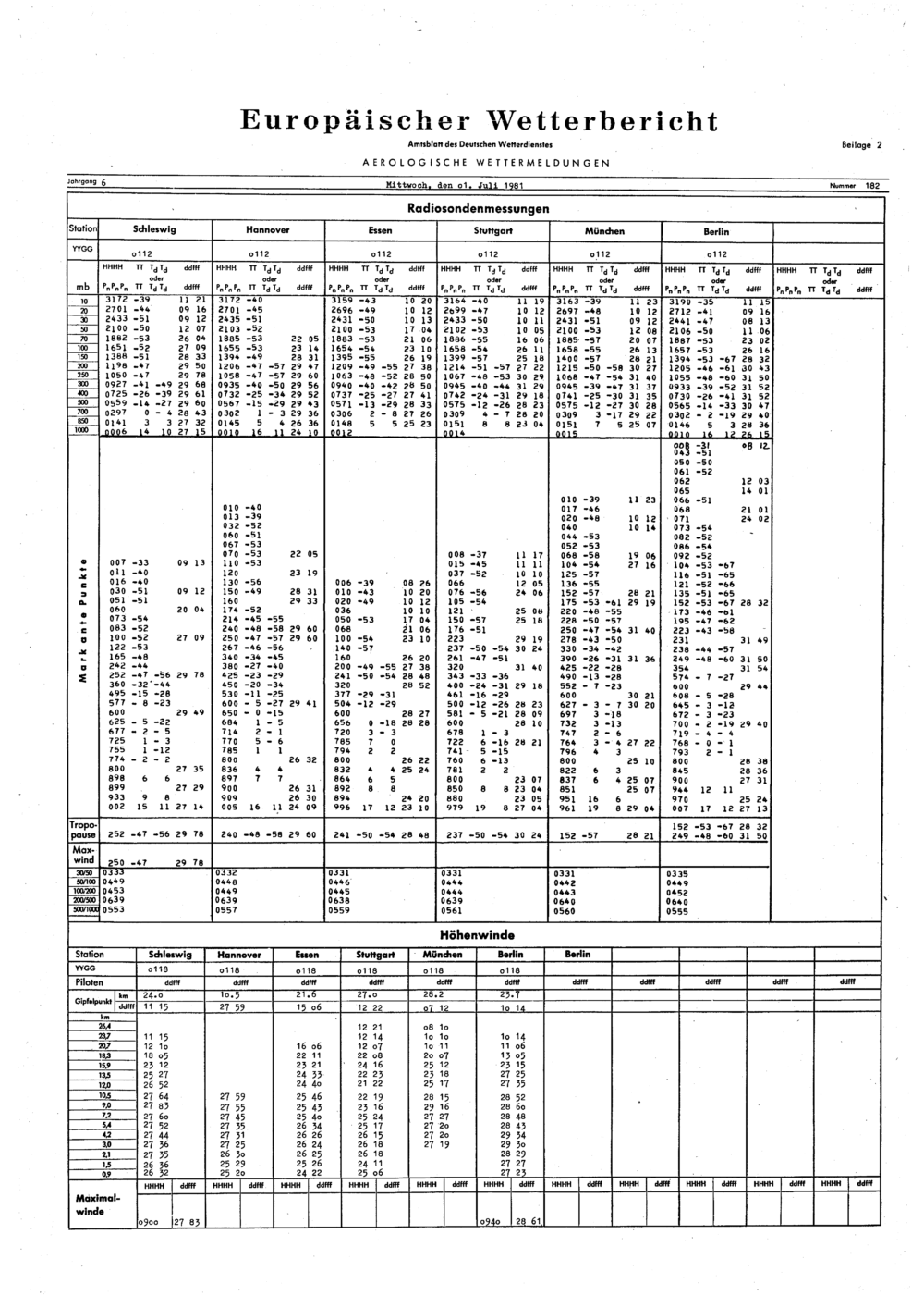 Europäischer Wetterbericht. Beilage 1, Bodenwettermeldungen. 1976-1994