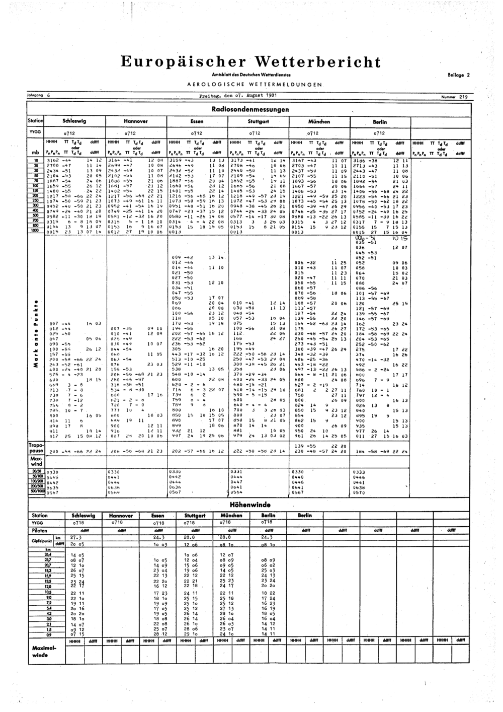 Europäischer Wetterbericht. Beilage 1, Bodenwettermeldungen. 1976-1994