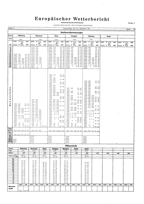Europäischer Wetterbericht. Beilage 1, Bodenwettermeldungen. 1976-1994