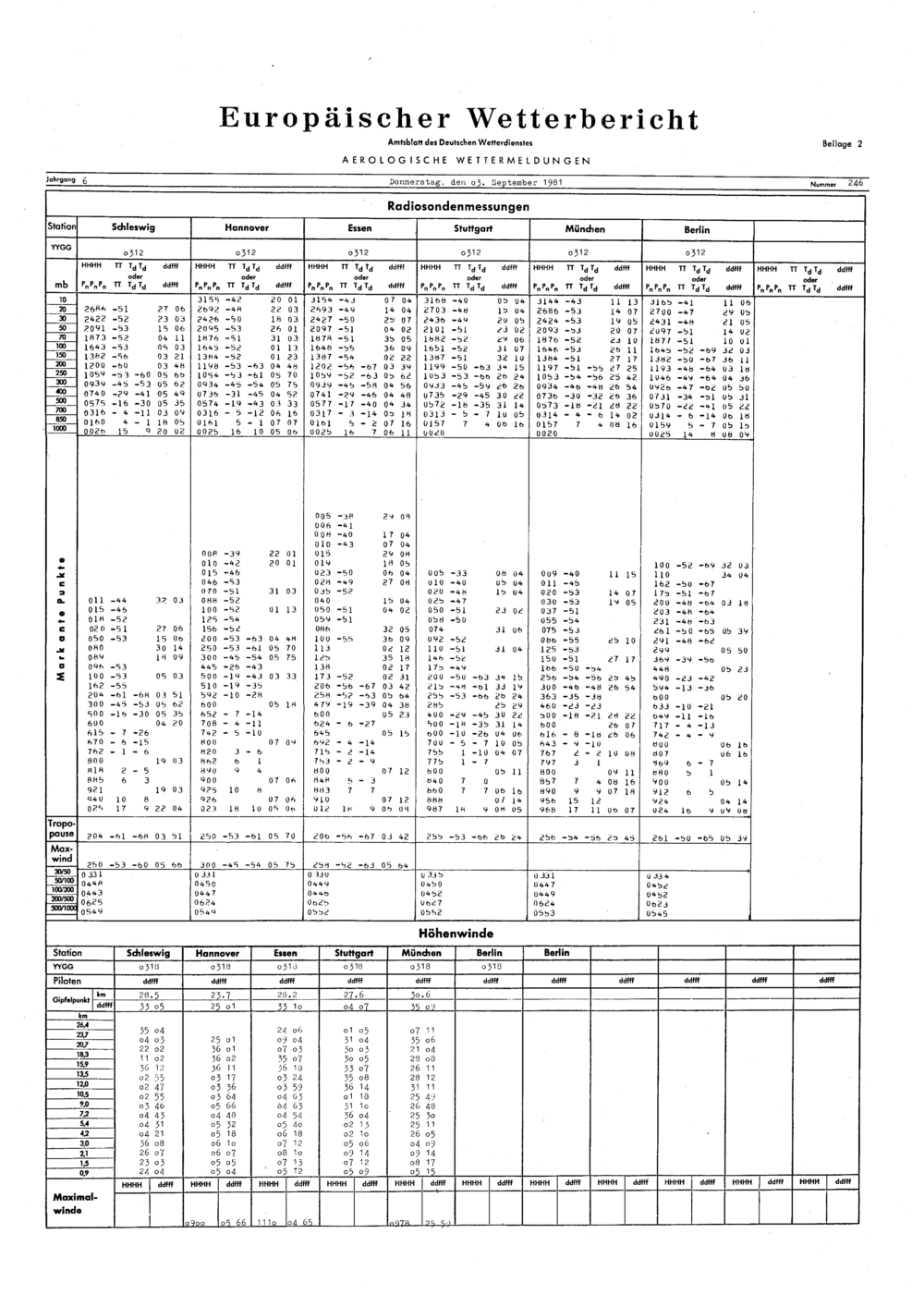 Europäischer Wetterbericht. Beilage 1, Bodenwettermeldungen. 1976-1994