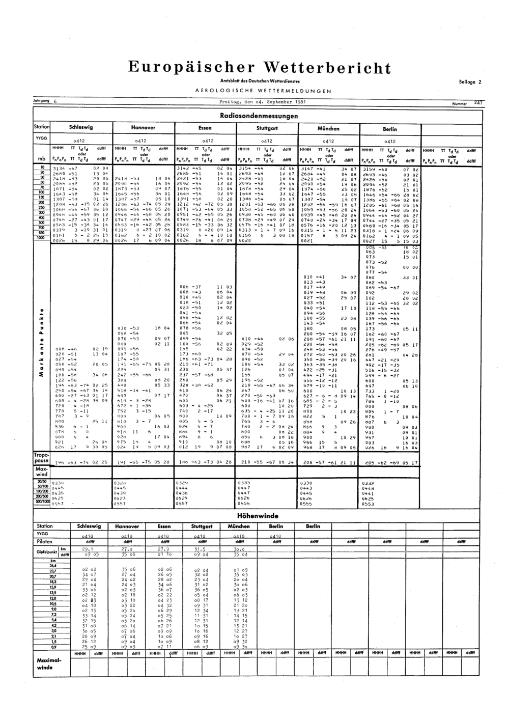 Europäischer Wetterbericht. Beilage 1, Bodenwettermeldungen. 1976-1994