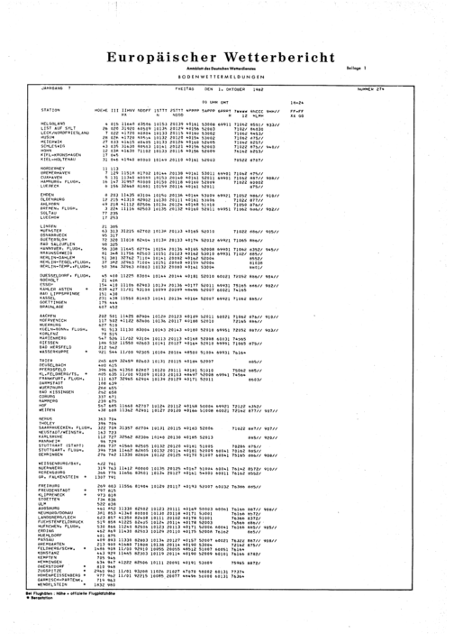 Europäischer Wetterbericht. Beilage 1, Bodenwettermeldungen. 1976-1994