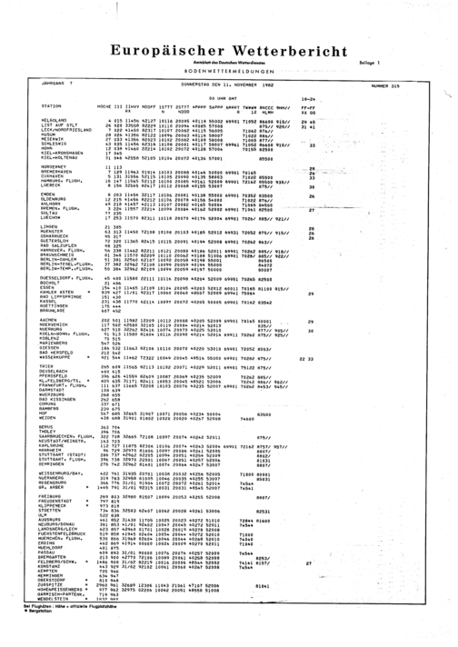 Europäischer Wetterbericht. Beilage 1, Bodenwettermeldungen. 1976-1994