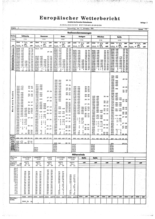 Europäischer Wetterbericht. Beilage 1, Bodenwettermeldungen. 1976-1994