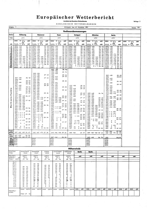 Europäischer Wetterbericht. Beilage 1, Bodenwettermeldungen. 1976-1994