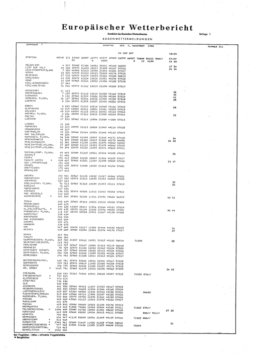 Europäischer Wetterbericht. Beilage 1, Bodenwettermeldungen. 1976-1994