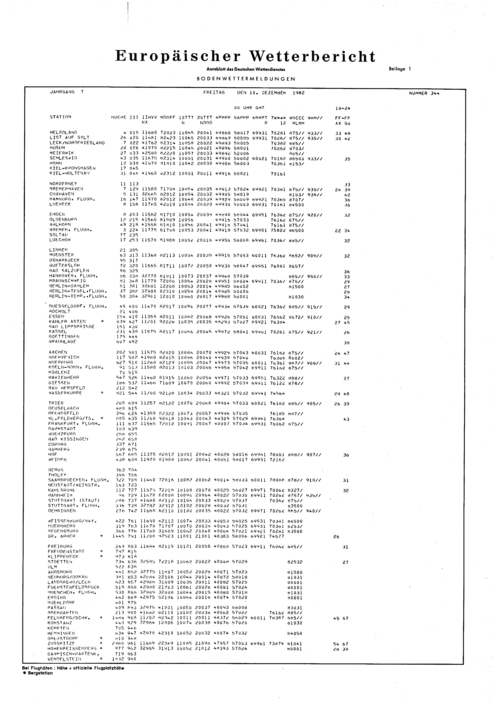 Europäischer Wetterbericht. Beilage 1, Bodenwettermeldungen. 1976-1994