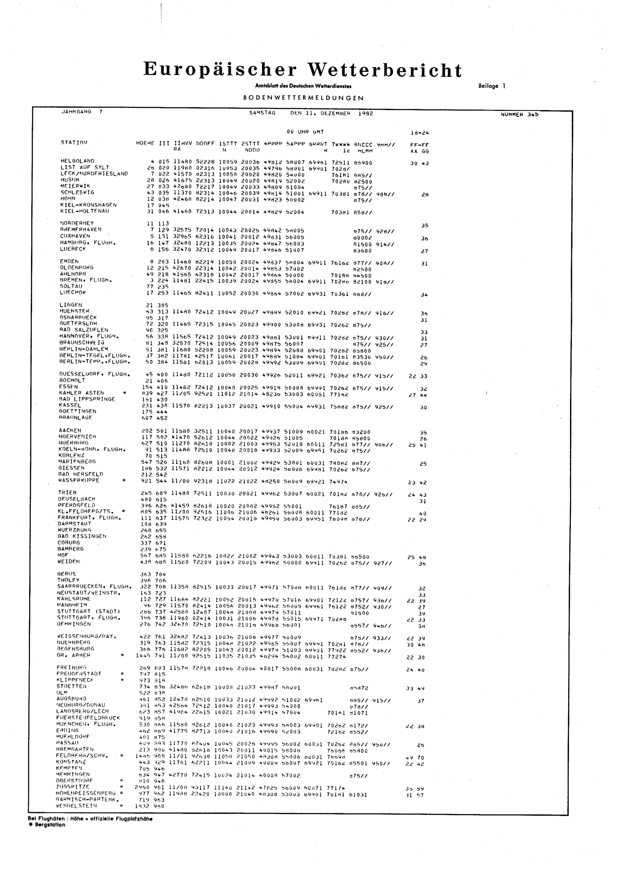 Europäischer Wetterbericht. Beilage 1, Bodenwettermeldungen. 1976-1994