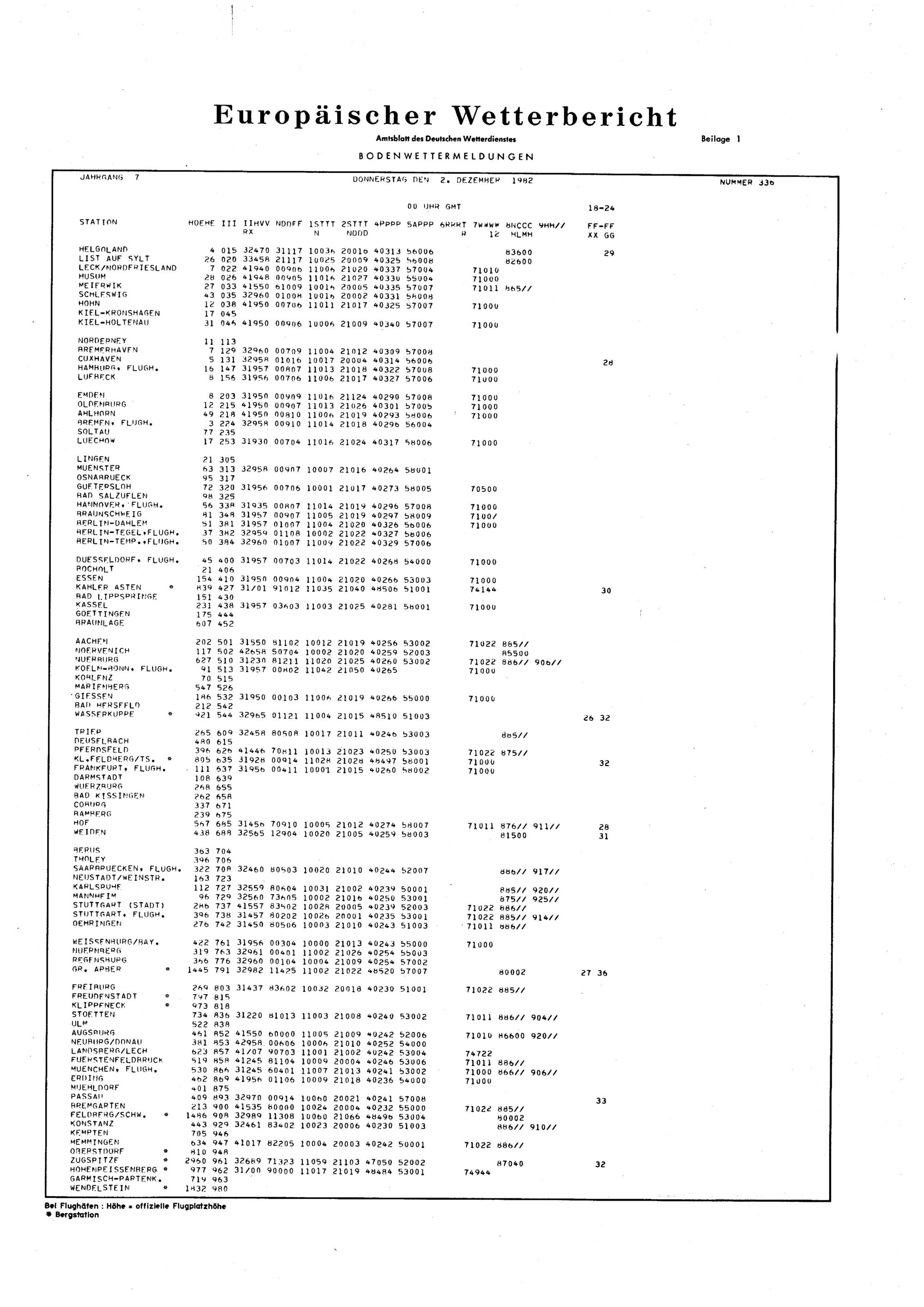 Europäischer Wetterbericht. Beilage 1, Bodenwettermeldungen. 1976-1994