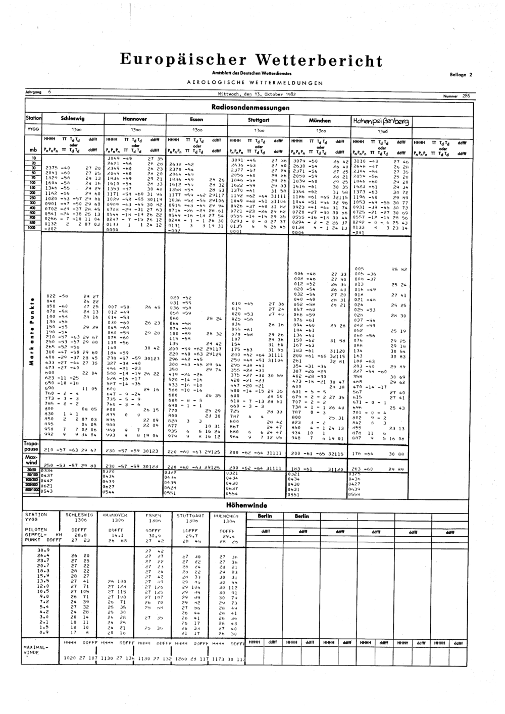 Europäischer Wetterbericht. Beilage 1, Bodenwettermeldungen. 1976-1994