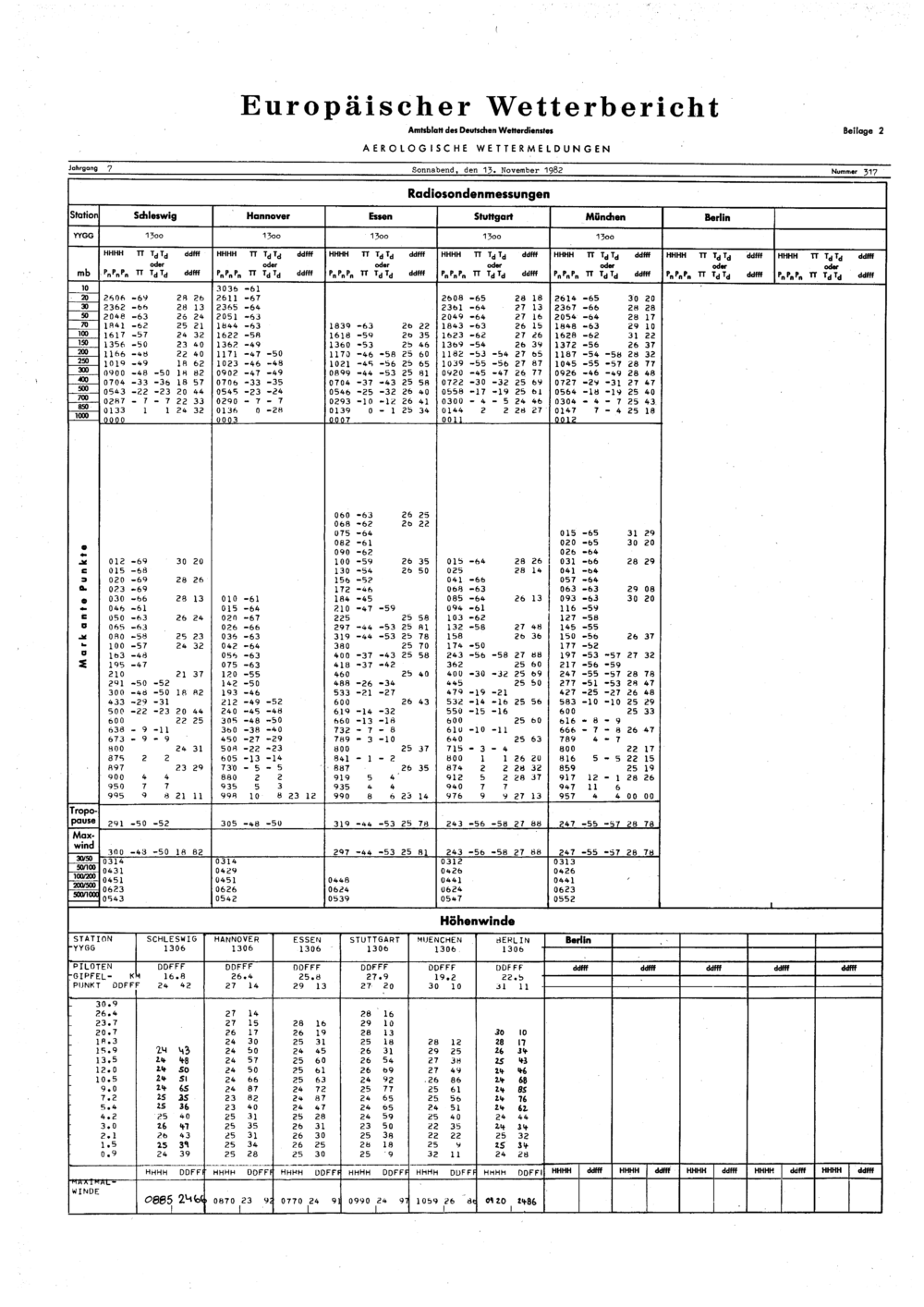 Europäischer Wetterbericht. Beilage 1, Bodenwettermeldungen. 1976-1994