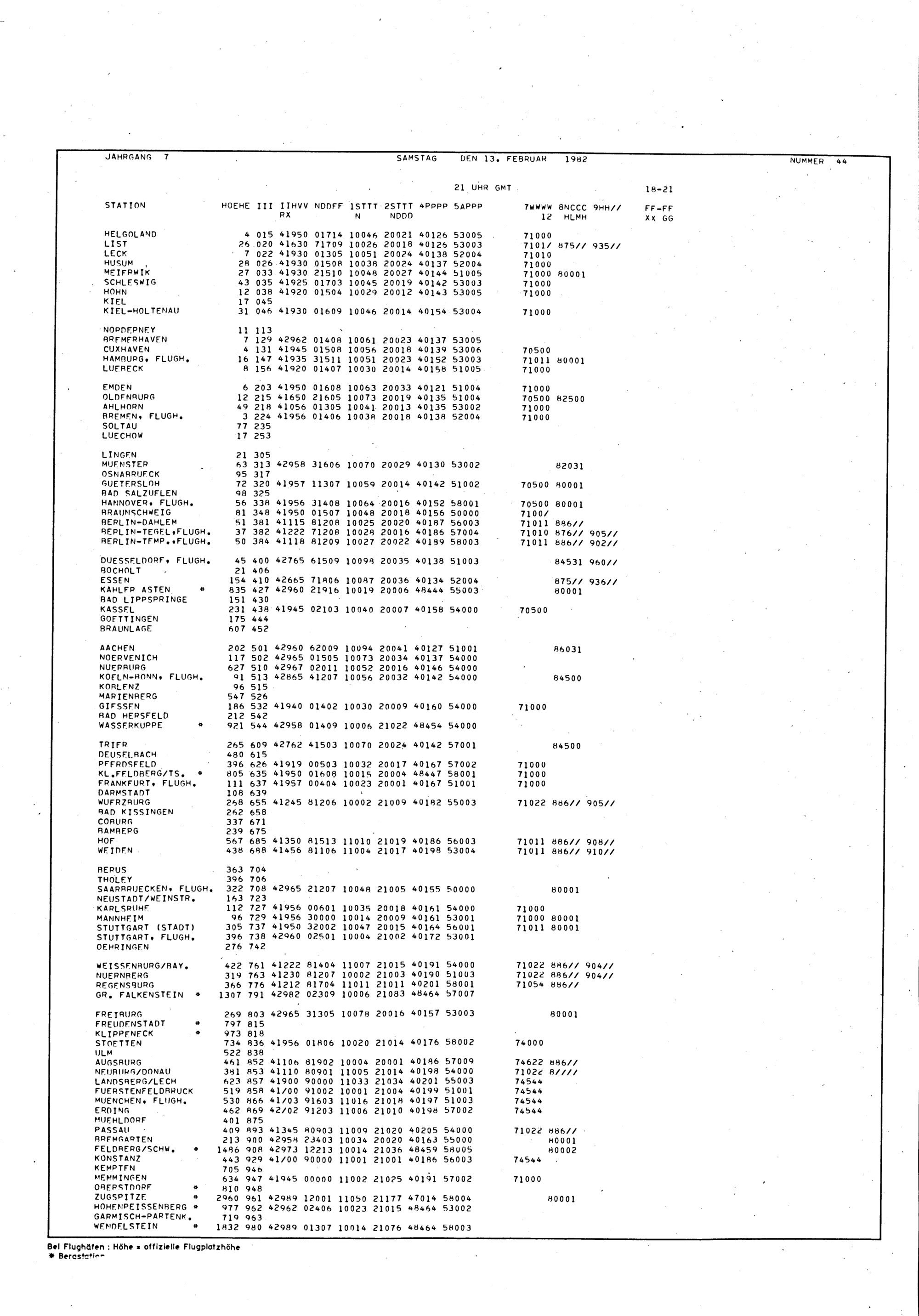 Europäischer Wetterbericht. Beilage 1, Bodenwettermeldungen. 1976-1994