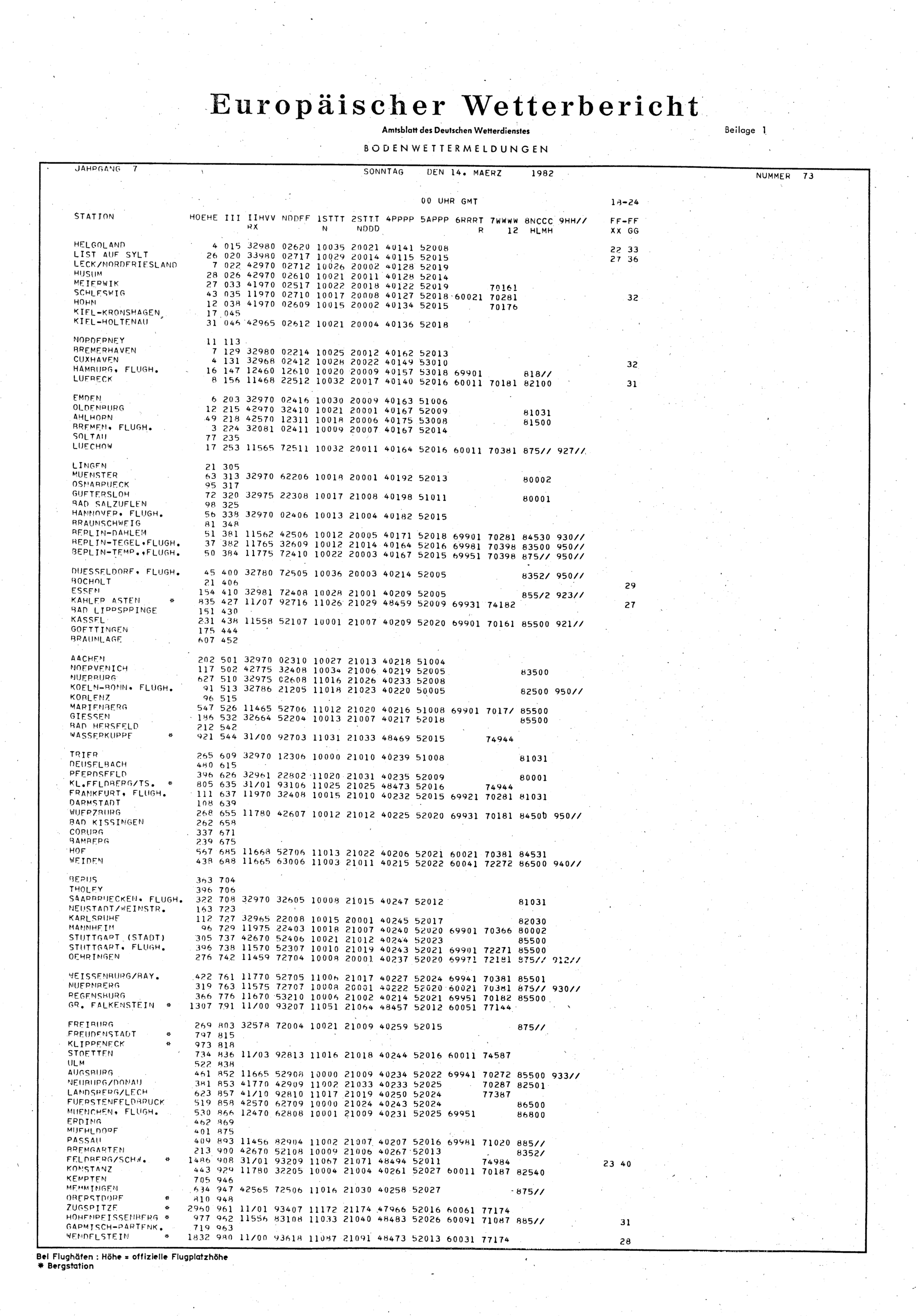 Europäischer Wetterbericht. Beilage 1, Bodenwettermeldungen. 1976-1994