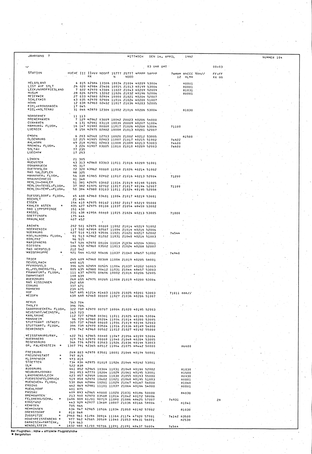 Europäischer Wetterbericht. Beilage 1, Bodenwettermeldungen. 1976-1994