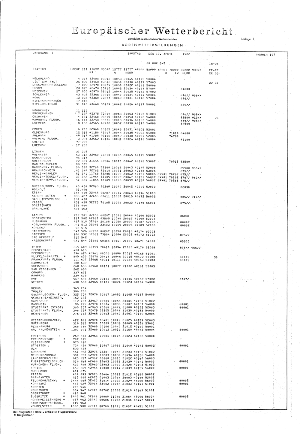 Europäischer Wetterbericht. Beilage 1, Bodenwettermeldungen. 1976-1994