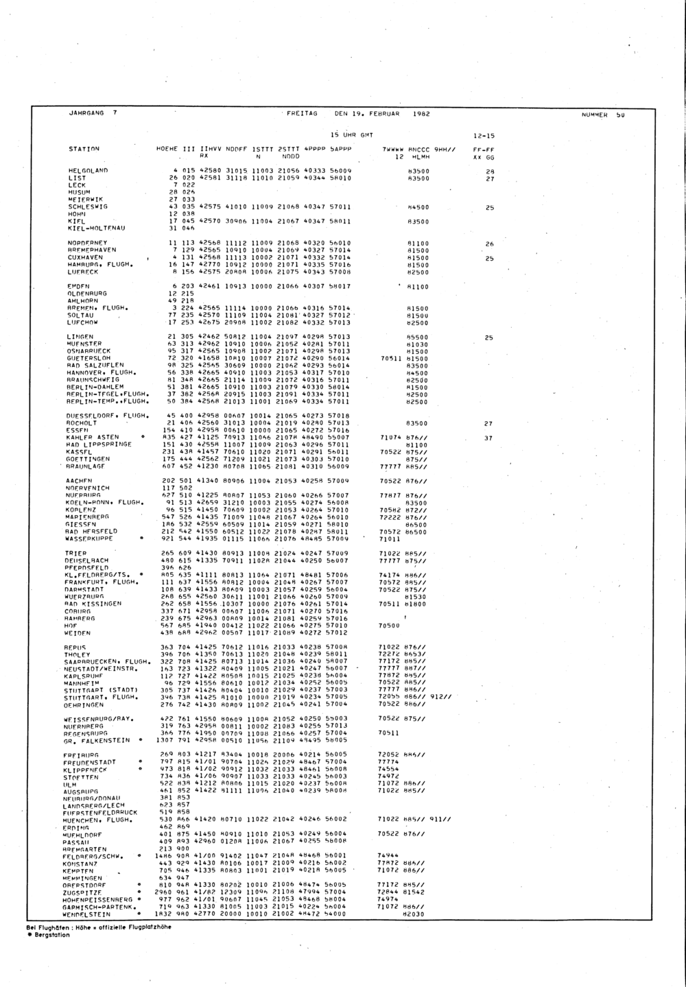 Europäischer Wetterbericht. Beilage 1, Bodenwettermeldungen. 1976-1994