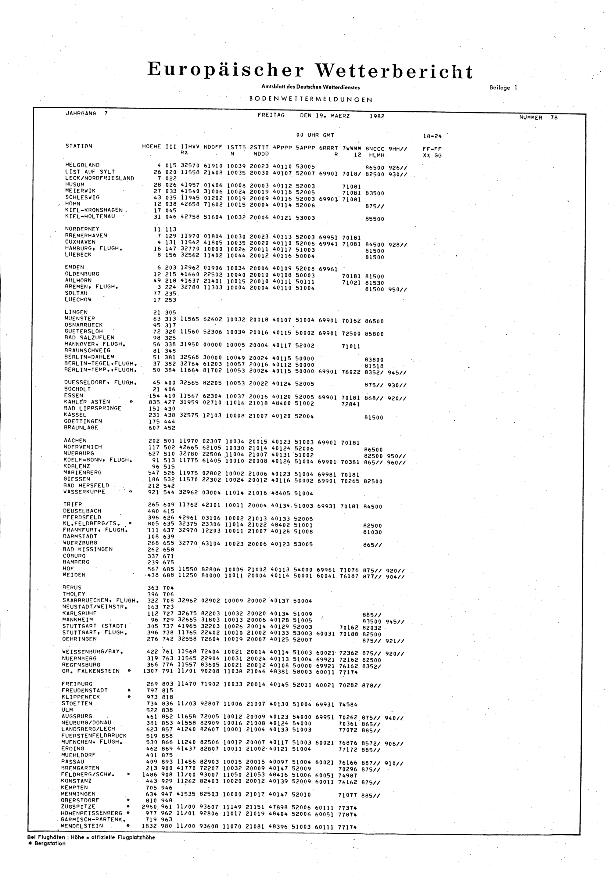 Europäischer Wetterbericht. Beilage 1, Bodenwettermeldungen. 1976-1994