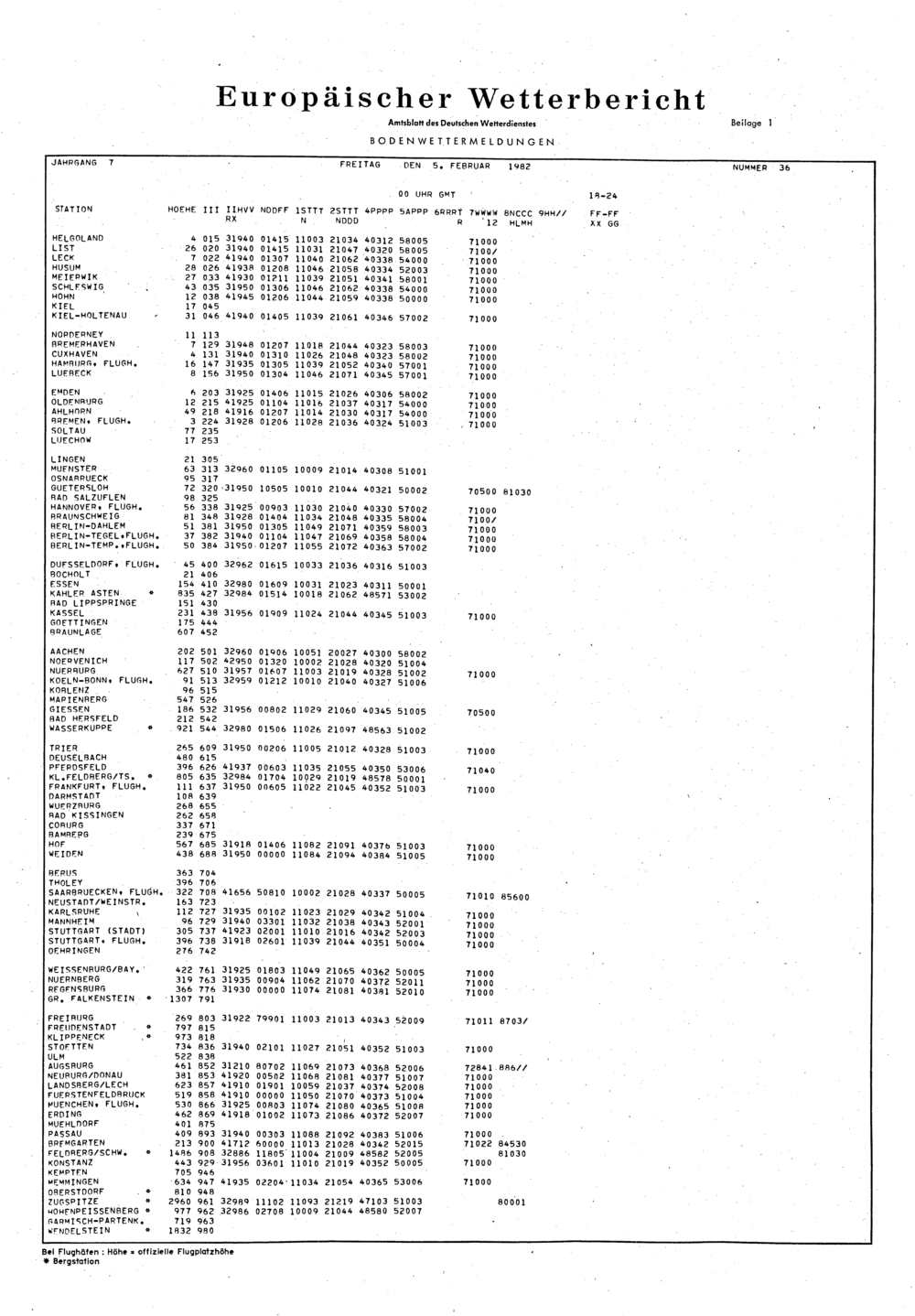Europäischer Wetterbericht. Beilage 1, Bodenwettermeldungen. 1976-1994