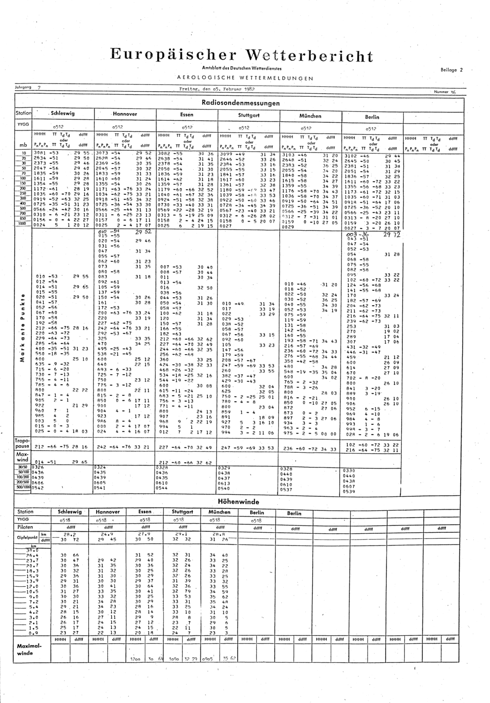 Europäischer Wetterbericht. Beilage 1, Bodenwettermeldungen. 1976-1994