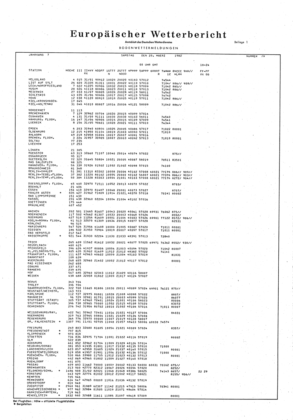 Europäischer Wetterbericht. Beilage 1, Bodenwettermeldungen. 1976-1994