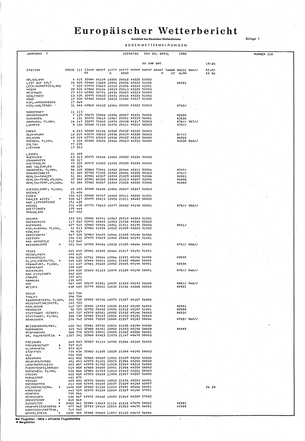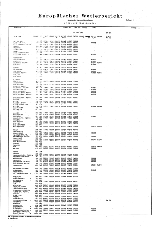 Europäischer Wetterbericht. Beilage 1, Bodenwettermeldungen. 1976-1994