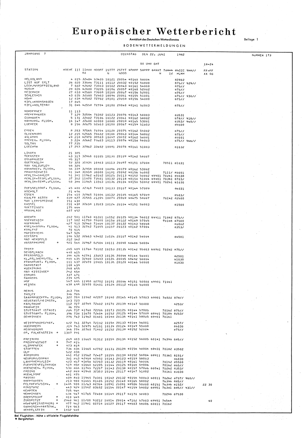 Europäischer Wetterbericht. Beilage 1, Bodenwettermeldungen. 1976-1994