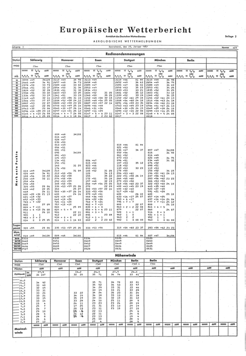 Europäischer Wetterbericht. Beilage 1, Bodenwettermeldungen. 1976-1994