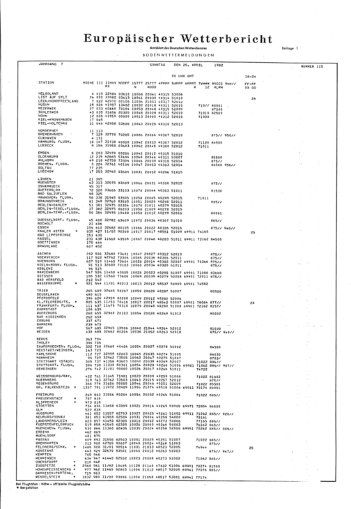 Europäischer Wetterbericht. Beilage 1, Bodenwettermeldungen. 1976-1994
