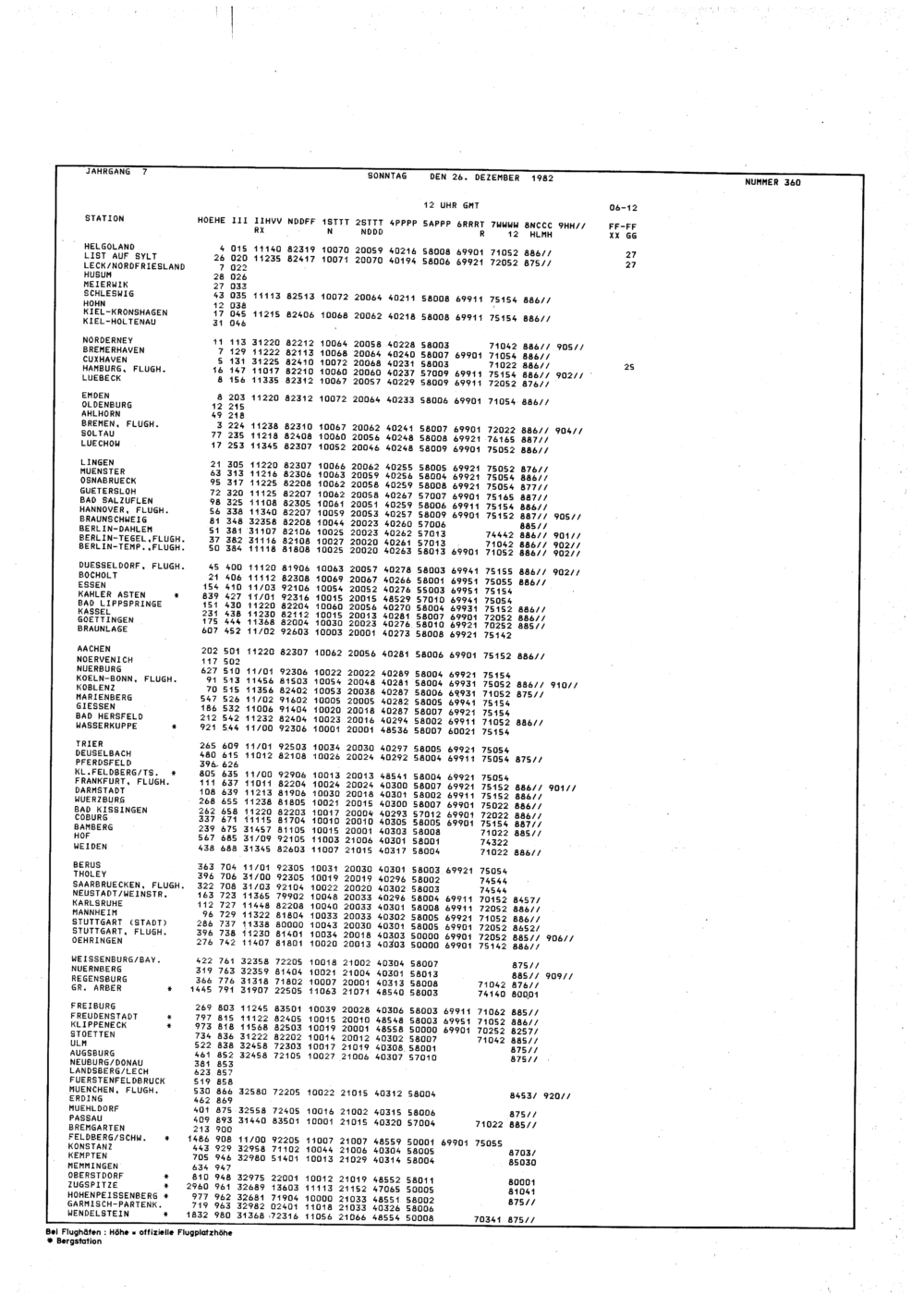 Europäischer Wetterbericht. Beilage 1, Bodenwettermeldungen. 1976-1994
