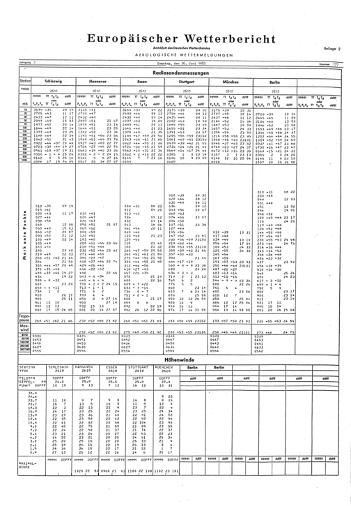Europäischer Wetterbericht. Beilage 1, Bodenwettermeldungen. 1976-1994