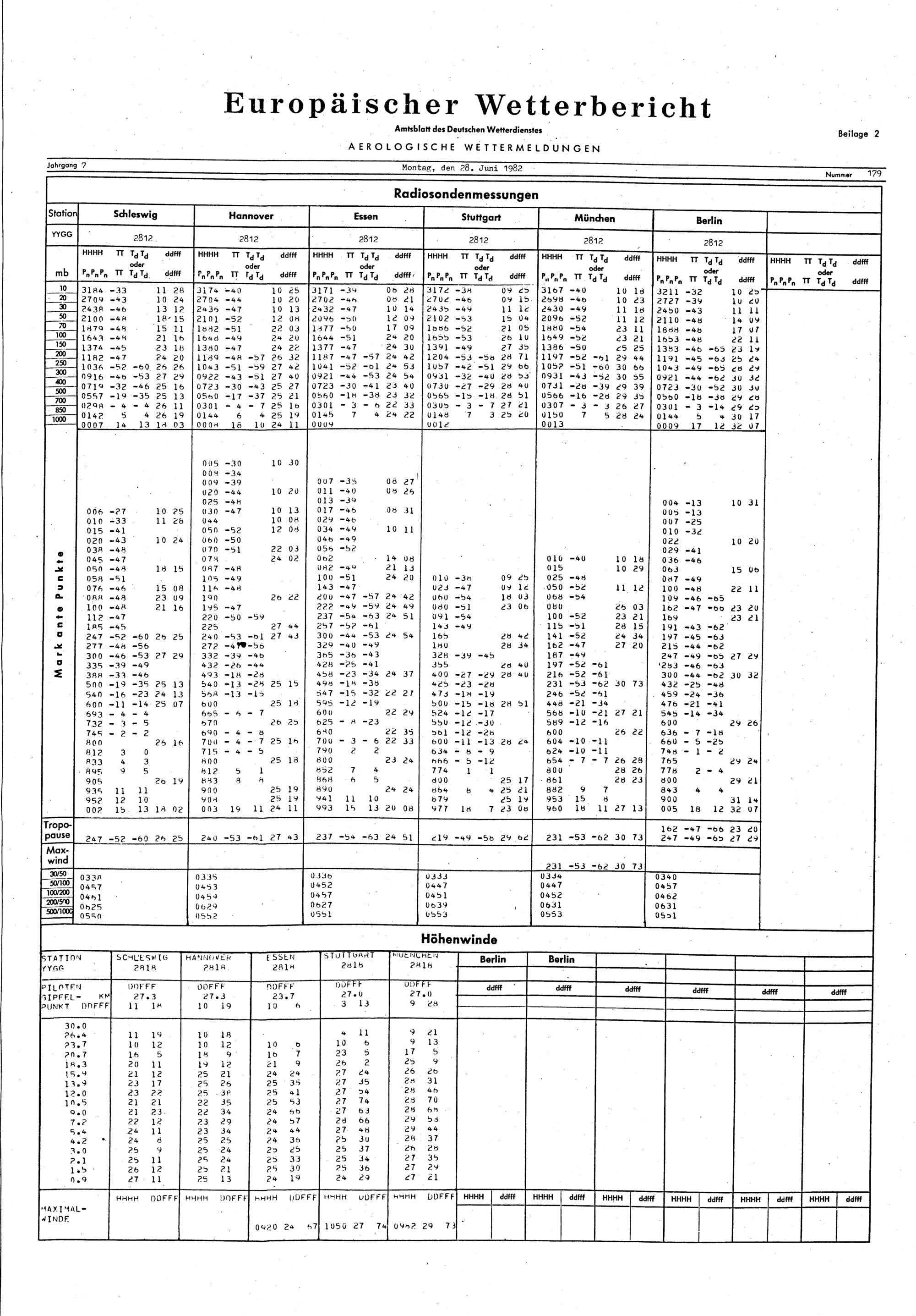 Europäischer Wetterbericht. Beilage 1, Bodenwettermeldungen. 1976-1994