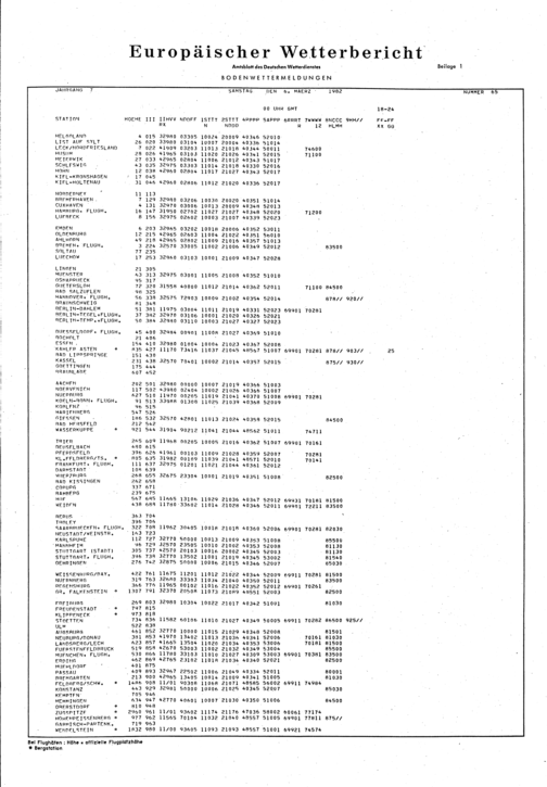 Europäischer Wetterbericht. Beilage 1, Bodenwettermeldungen. 1976-1994
