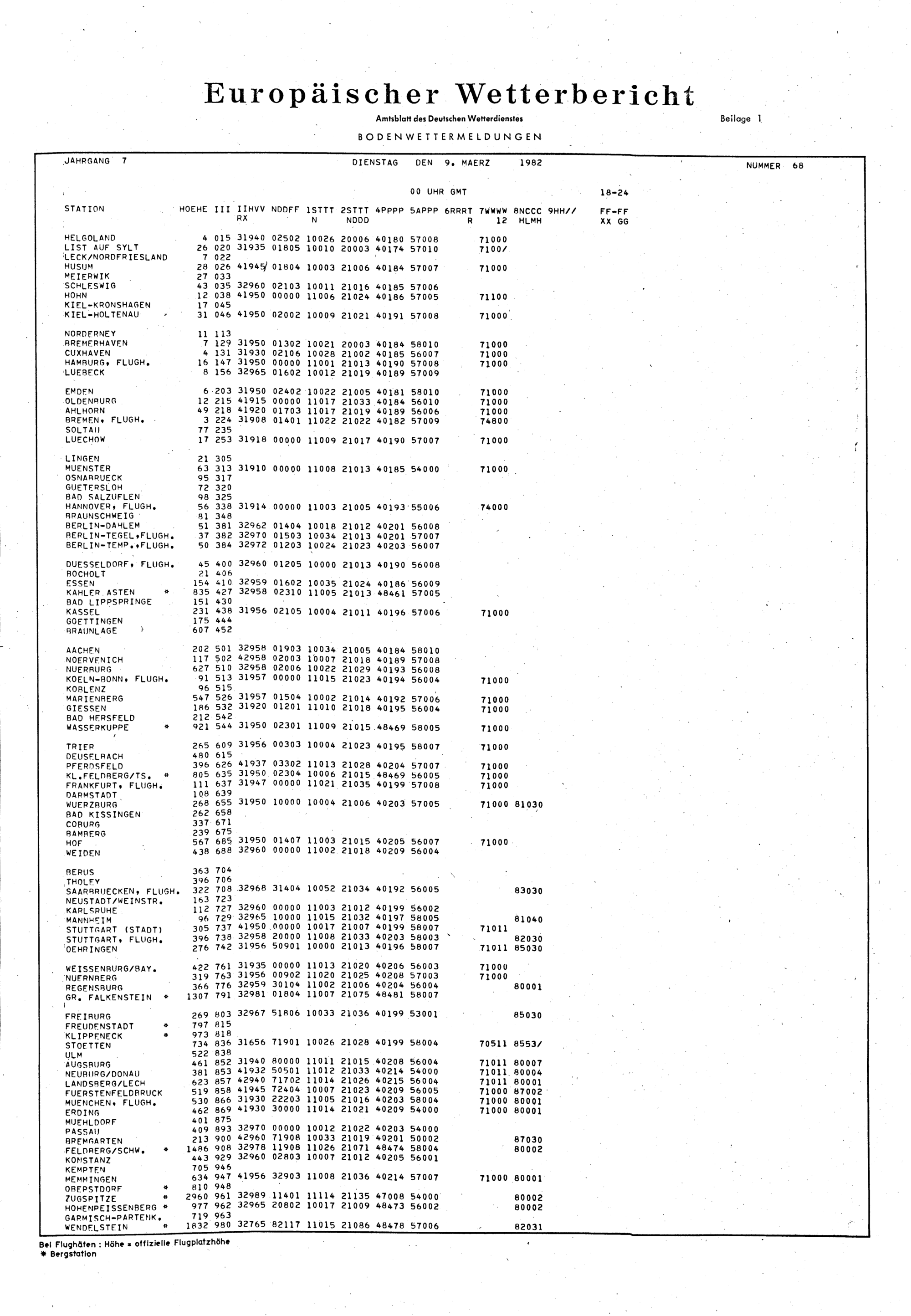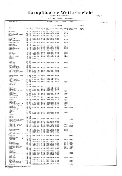 Europäischer Wetterbericht. Beilage 1, Bodenwettermeldungen. 1976-1994