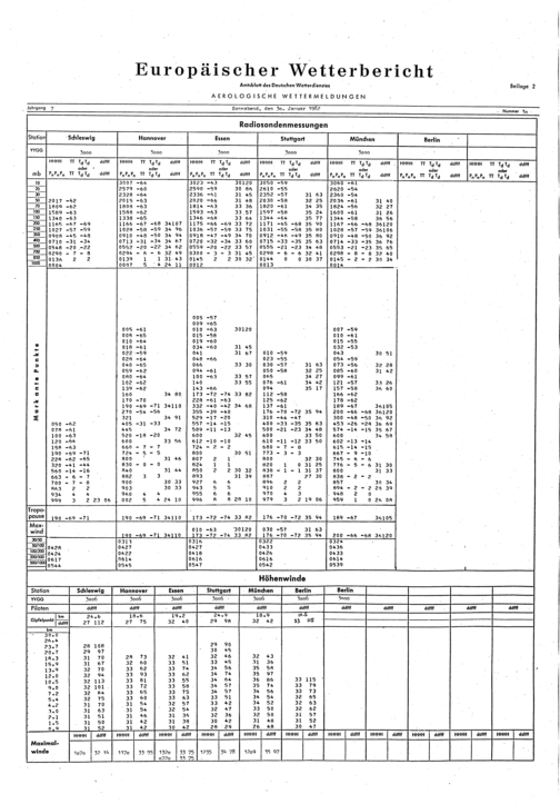 Europäischer Wetterbericht. Beilage 1, Bodenwettermeldungen. 1976-1994