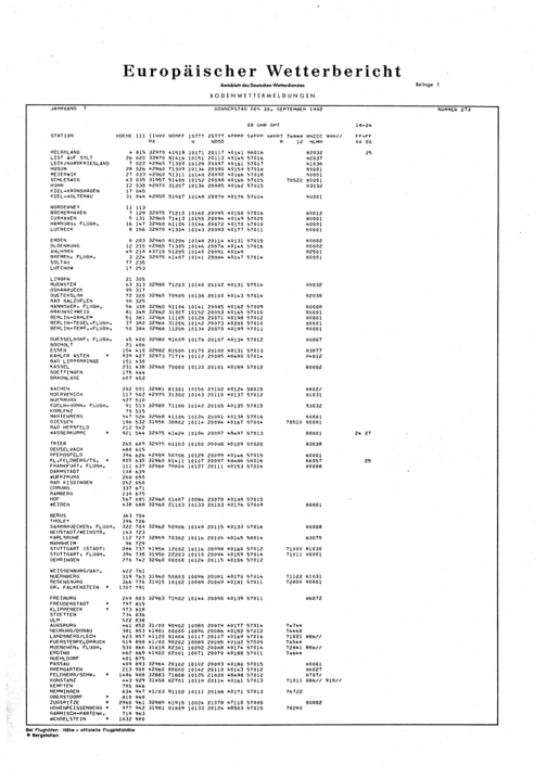 Europäischer Wetterbericht. Beilage 1, Bodenwettermeldungen. 1976-1994