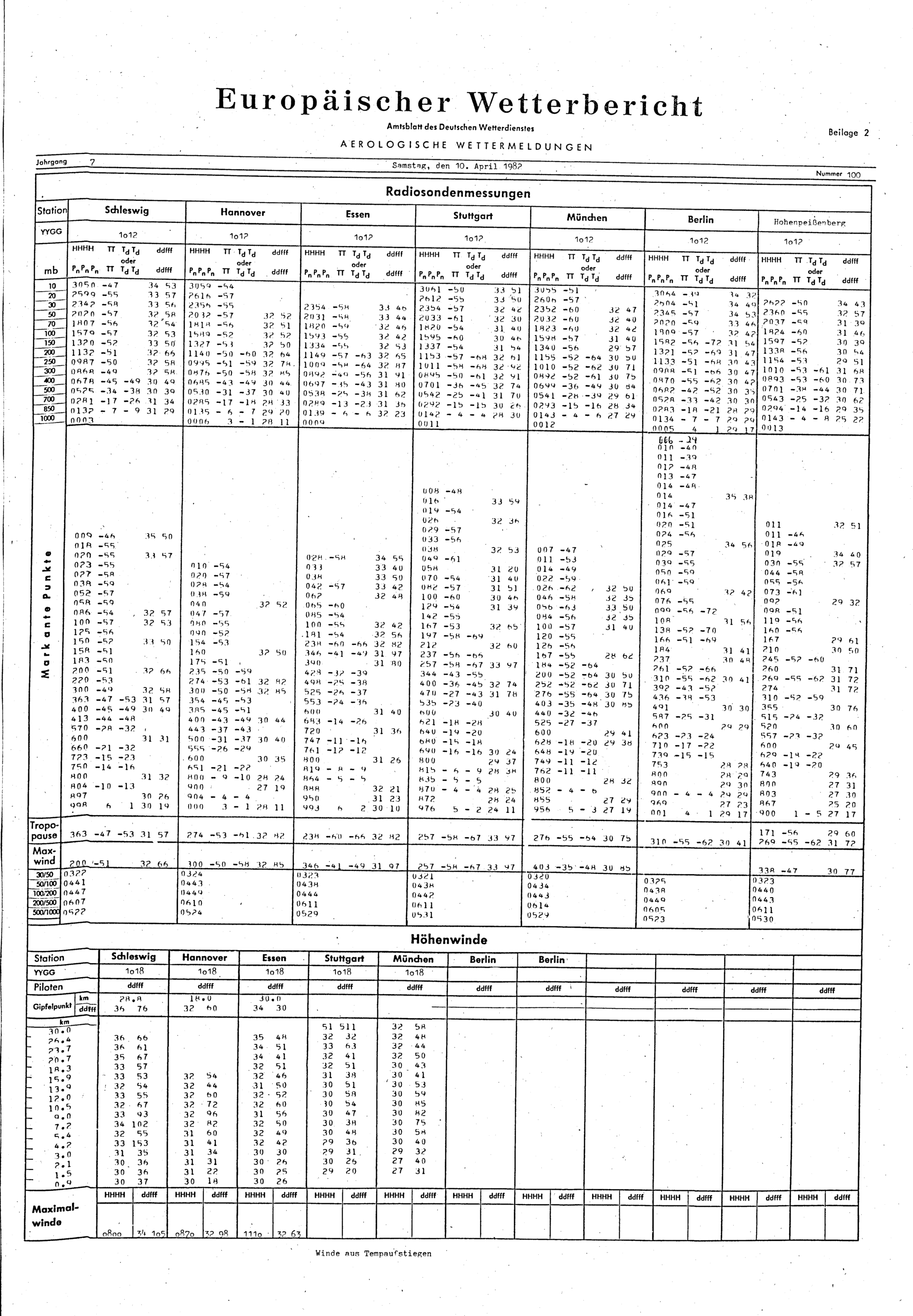 Europäischer Wetterbericht. Beilage 1, Bodenwettermeldungen. 1976-1994
