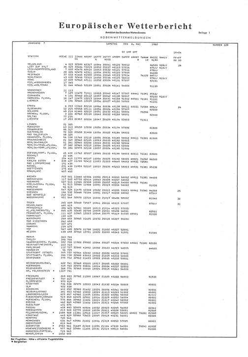 Europäischer Wetterbericht. Beilage 1, Bodenwettermeldungen. 1976-1994