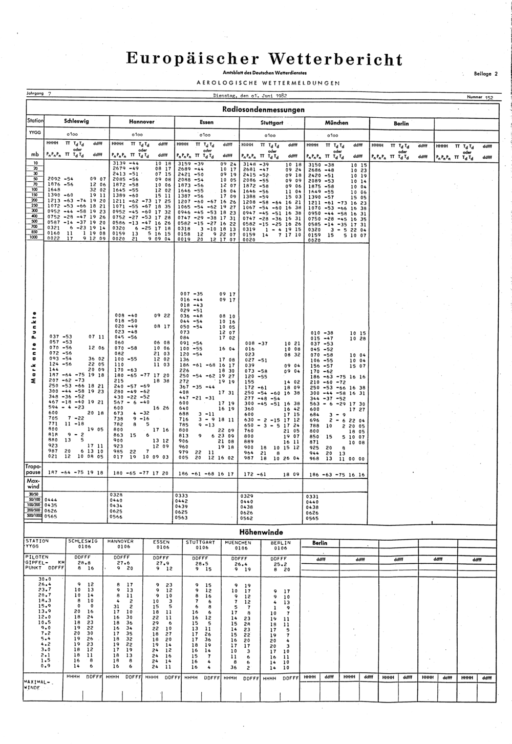Europäischer Wetterbericht. Beilage 1, Bodenwettermeldungen. 1976-1994