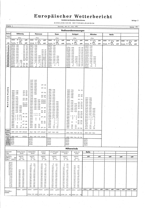 Europäischer Wetterbericht. Beilage 1, Bodenwettermeldungen. 1976-1994
