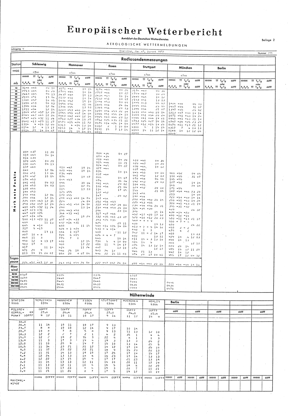 Europäischer Wetterbericht. Beilage 1, Bodenwettermeldungen. 1976-1994
