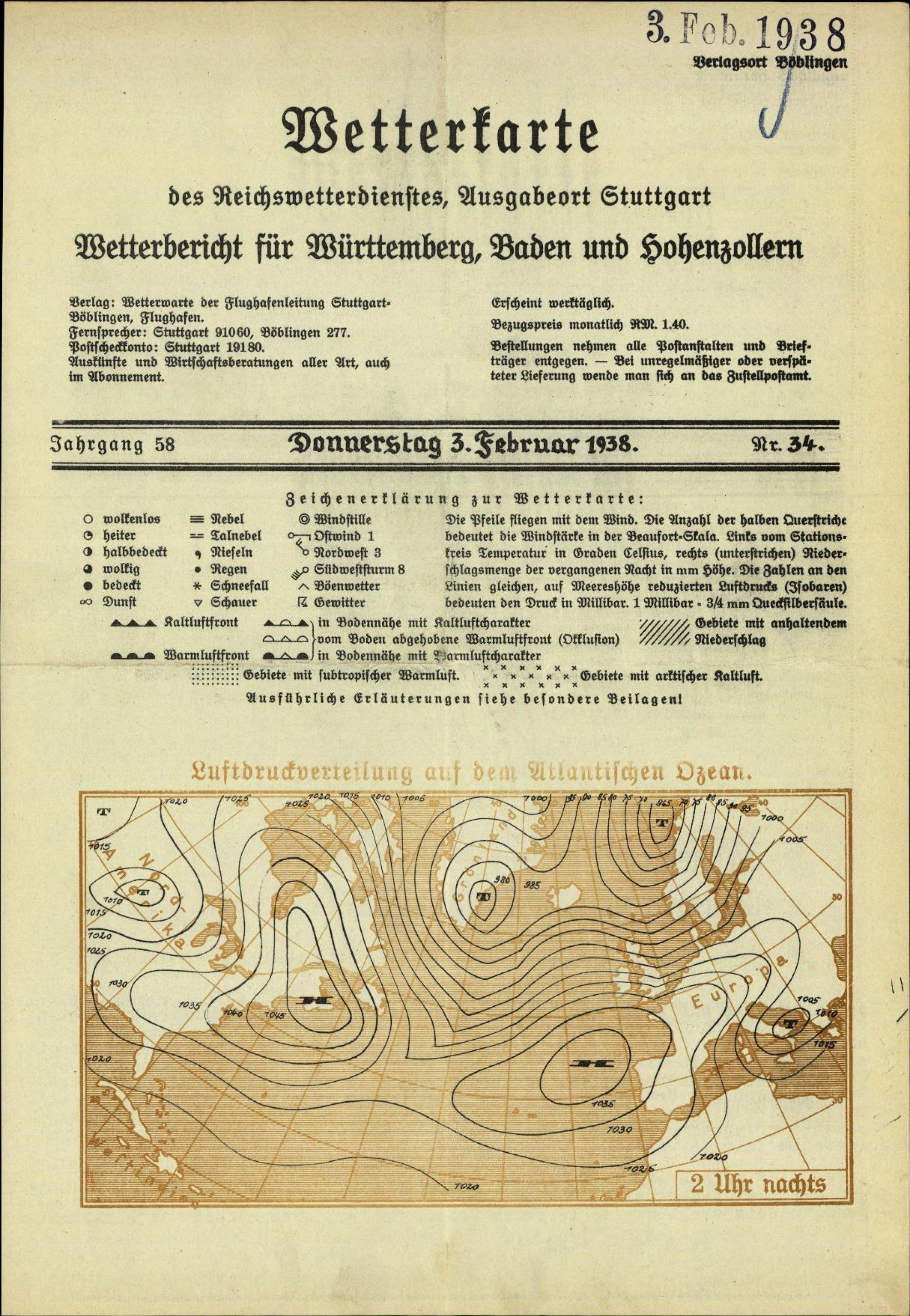 Wetterkarte des Reichswetterdienstes